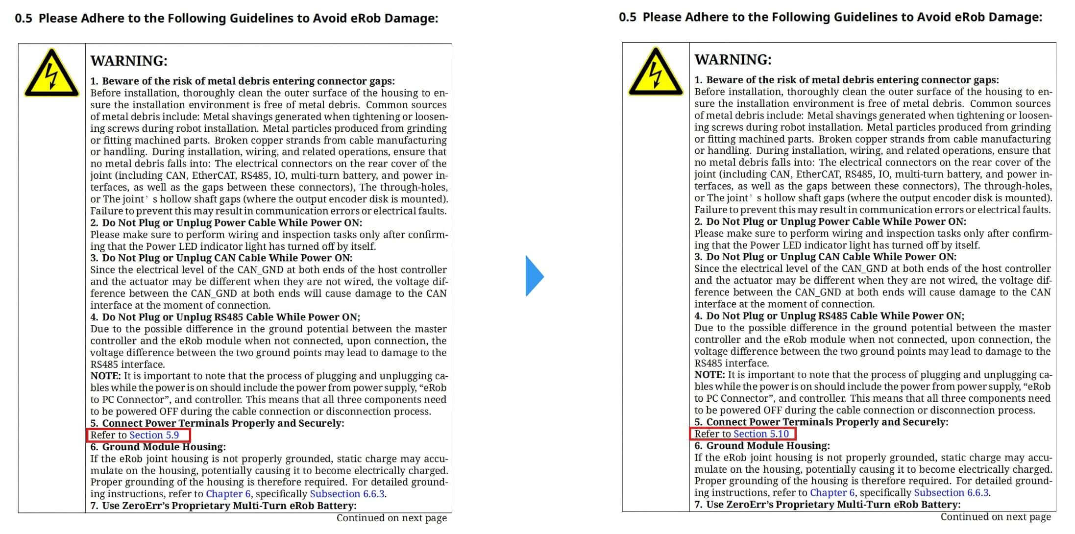 Safety Guide 0.5 Section 5.9 changed to Section 5.10.